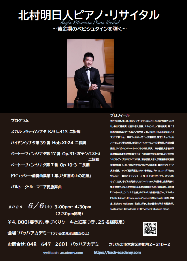 2026 6/6 (土)3:00pm~4:30pm バッハアカデミー(東武アーバンパークライン大宮公園)